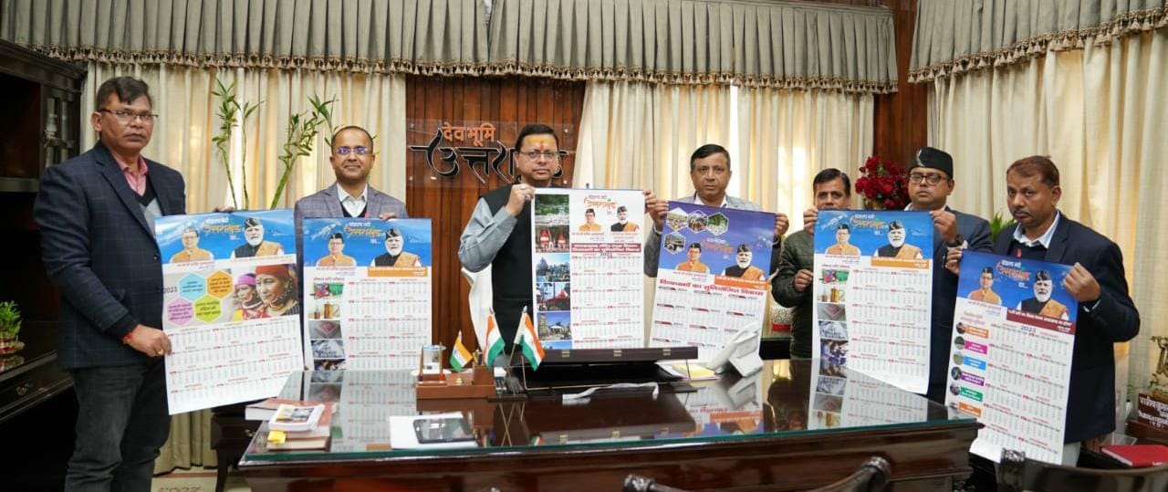 मुख्यमंत्री कैम्प कार्यालय में सूचना एवं लोक सम्पर्क विभाग, द्वारा उत्तराखण्ड के वार्षिक कैलेंडर नमामि देवभूमि ‘संकल्प नये उत्तराखण्ड का’ का विमोचन किया। जिसका विमोचन प्रदेश के मुख्यमंत्री पुष्कर सिंह धामी ने किया। उन्होंने कहा कि , इस वार्षिक कैलेंडर के माध्यम से उत्तराखण्ड के प्रमुख धार्मिक स्थलों, पर्यटन स्थलों, उत्तराखण्ड की शिल्पकला, चित्रकला, लोककला एवं पौराणिक मंदिरों की जानकारी मिलती है।