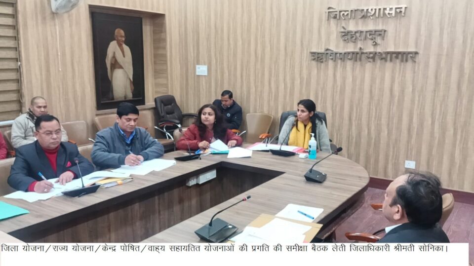 जि.सू.का, देहरादून कलेक्ट्रेट में जिला योजना,राज्य योजना,केन्द्र पोषित एवं वाह्य सहायतित योजनाओं से संबंधित कार्य प्रगति की समीक्षा बैठक आयोजित हुई। जिसकी अध्यक्षता जिलाधिकारी श्रीमती सोनिका द्वारा की गई। समीक्षा बैठक में अधिकारियों ने अवगत कराया कि, जिला योजना में अवमुक्त धनराशि के सापेक्ष 76.49 प्रतिशत, राज्य सेक्टर में 72.39 प्रतिशत, केन्द्र पोषित योजनाओं में 91.42 प्रतिशत तथा वाह्य सहायतित योजनाओं में 88.26 प्रतिशत धनराशि का व्यय किया गया तथा सभी मदों में अवमुक्त धनराशि के सापेक्ष 81.57 प्रतिशत धनराशि का व्यय किया गया।
