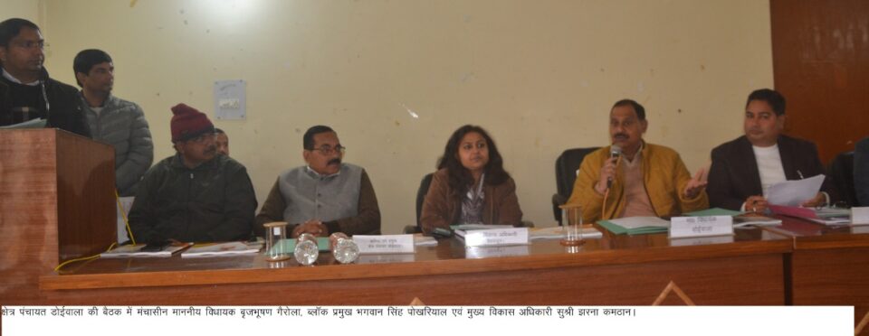 डोईवाला ब्लॉक सभागार मे आयोजित क्षेत्र पंचायत की बैठक में बृजभूषण गैरोला विधायक डोईवाला, झरना कामठान मुख्य विकास अधिकारी ने प्रतिभाग किया। बैठक की अध्यक्षता ब्लाॅक प्रमुख भगवान सिंह पोखरियाल ने की।