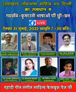 उत्तराखंडलोक भाषा साहित्य मंच दिल्ली के तत्वाधान में आयोजित होने वाले गढ़वाली कुमाऊनी लोक कलाकारों के पहाड़ी गीत संगीत साहित्य में सम्मिलित होकर लोकगीतों का आनंद अवश्य लें। इस कार्यक्रम में सम्मिलित होकर लोक कलाकारों का सम्मान बढ़ाएं।