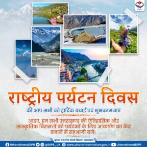 श्री धामी ने सभी को “राष्ट्रीय पर्यटन दिवस” की हार्दिक शुभकामनाएं भी दी हैं।