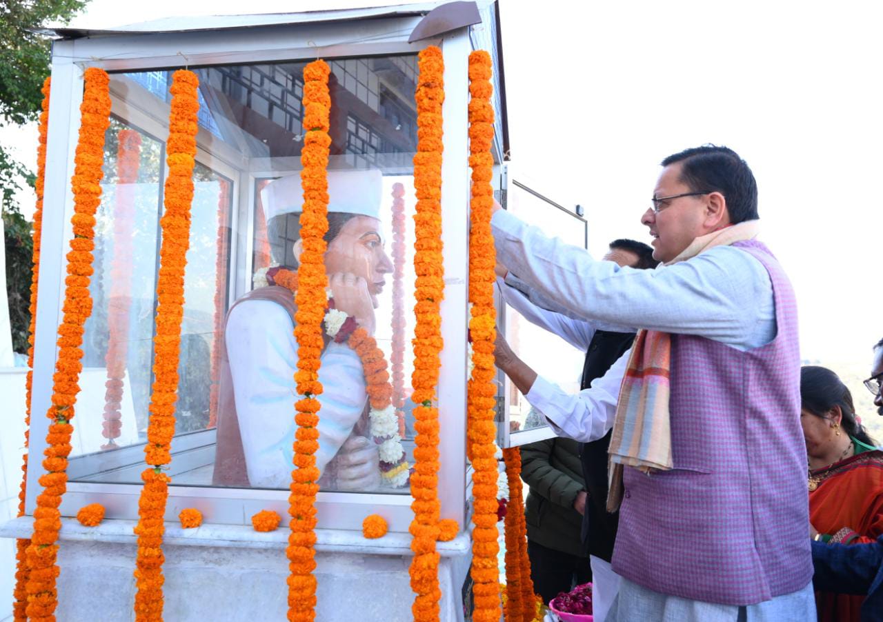 मुख्यमंत्री पुष्कर सिंह धामी द्वारा वी.सी. गब्बर सिंह जी एवं अमर शहीद श्रीदेव सुमन जी के स्मारक पर माल्यार्पण।