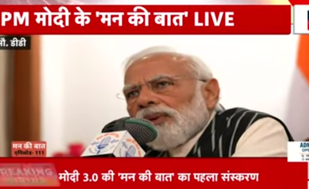दिल्ली: तीसरी बार देश के प्रधानमंत्री पद की जिम्मेदारी संभालने के बाद आज 30 जून को प्रधानमंत्री नरेंद्र मोदी ने “मन की बात” के 111 वें संस्करण में देश वासियों को संबोधित किया। “मन की बात” की शुरुआत – ‘इति विदा पुनर्मिलनाय’ से की। इसका अर्थ भी उतना ही प्यारा है, मैं विदा लेता हूँ, फिर मिलने के लिए। इसी भाव से मैंने फरवरी में आपसे कहा था कि चुनाव नतीजों के बाद फिर मिलूँगा, और आज, ‘मन की बात’ के साथ, मैं, आपके बीच फिर हाजिर हूँ। उम्मीद है आप सब अच्छे होंगे, घर में सबका स्वास्थ्य अच्छा होगा और अब तो मानसून भी आ गया है, और जब मानसून आता है, तो मन भी आनंदित हो जाता है। आज से फिर, एक बार, हम, ‘मन की बात’ में ऐसे देशवासियों की चर्चा करेंगे जो अपने कामों से समाज में, देश में, बदलाव ला रहे हैं। हम चर्चा करेंगे, हमारी, समृद्ध संस्कृति की, गौरवशाली इतिहास की, और, विकसित भारत के प्रयास की।