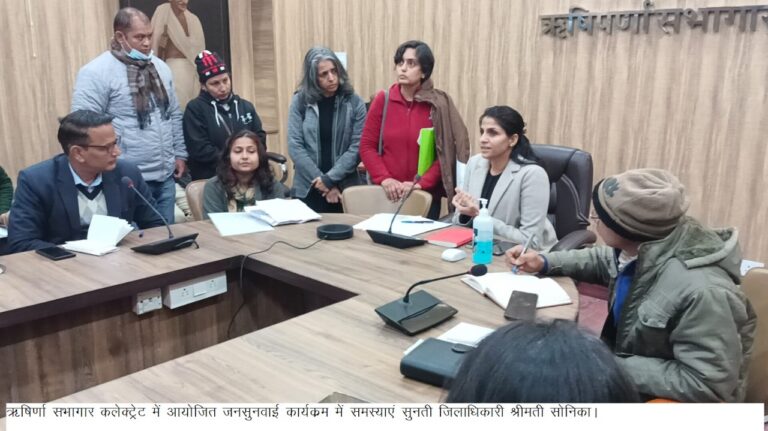 देहरादून 02 जनवरी 2023, (जि.सू.का), देहरादून जिलाधिकारी श्रीमती सोनिका की अध्यक्षता में ऋषिपर्णा सभागार कलेक्ट्रेट में आयोजित "जनसुनवाई" में 76...