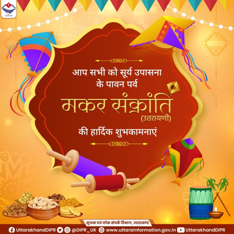 देहरादून 14 जनवरी 2023, मुख्यमंत्री पुष्कर सिंह धामी ने "मकर संक्रांति" के पर्व पर प्रदेश वासियों को शुभकामनाएं दी हैं।...