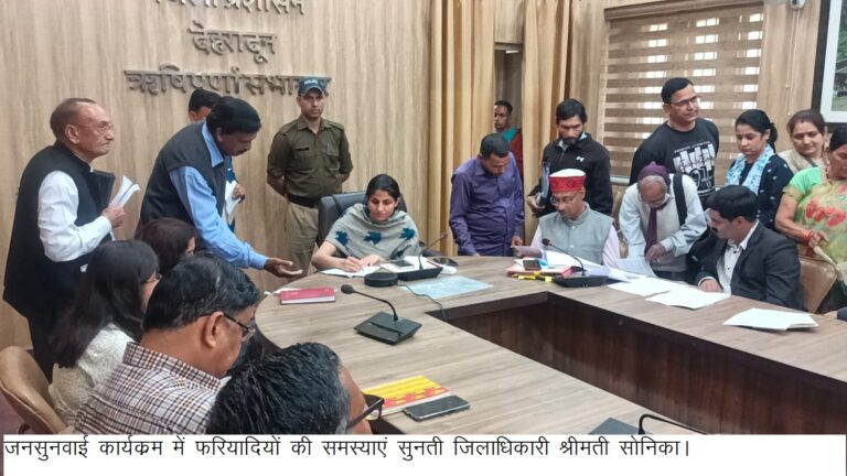 देहरादून 13 मार्च 2023, (जि.सू.का), जनसमस्याओं के शीघ्र निस्तारण के लिए जिलाधिकारी श्रीमती सोनिका द्वारा कलेक्ट्रेट सभागार में आयोजित किए...