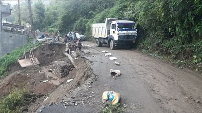 मसूरी: बारिश के बाद कैंपटी के पास नेशनल हाईवे का बड़ा हिस्सा दो जगह धंसा, सड़क पर पड़ीं दरारेंकैंपटी...