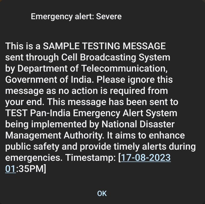 गुरुवार को दोपहर करीब 1.30 बजे कई स्मार्टफोन पर 'आपातकालीन चेतावनी: गंभीर' संदेश प्राप्त हुआ। समाप्त। यह संदेश राष्ट्रीय आपदा...