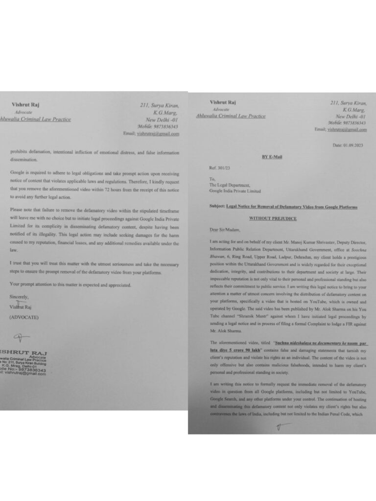 आपत्तिजनक वीडियो यूट्यूब पर पोस्ट करने के लिए ,यूट्यूब प्लेटफार्म का गलत प्रयोग के लिए उपनिदेशक सूचना विभाग मनोज...