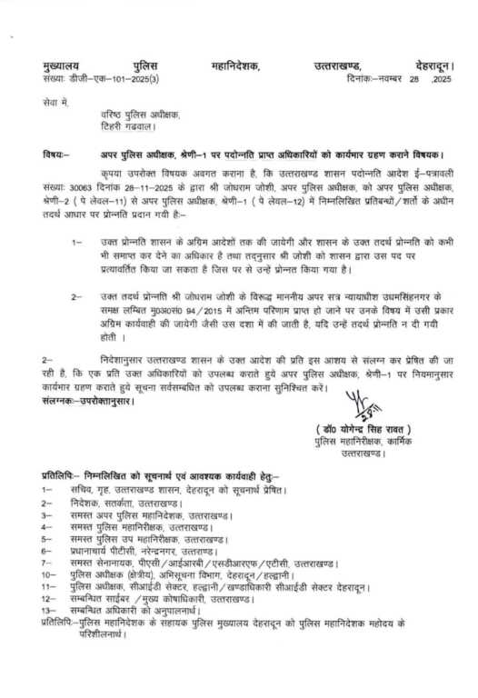 उत्तराखंड पुलिस महकमे में बड़ा प्रशासनिक फेरबदल किया गया है। विभाग ने आधा दर्जन से अधिक पुलिस क्षेत्राधिकारियों (CO) को...