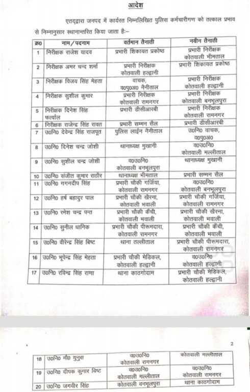 नैनीताल के एसएसपी मंजूनाथ टीसी ने किए ट्रांसफर बदले गए चार कोतवाल और एक थाना इंचार्ज बदले गए जिले के...