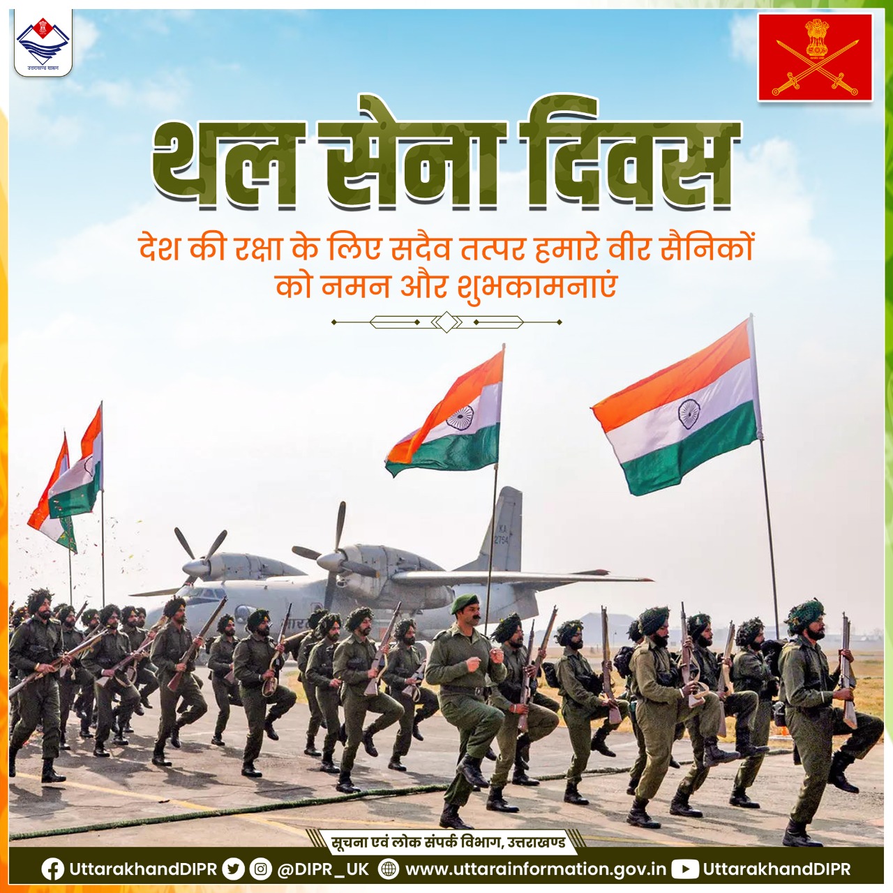 थल सेना दिवस पर उत्तराखंड के मुख्यमंत्री पुष्कर सिंह धामी ने कहा कि, “थल सेना दिवस पर देश की रक्षा के लिए सदैव तत्पर हमारे वीर सैनिकों को नमन और शुभकामनाएं”।