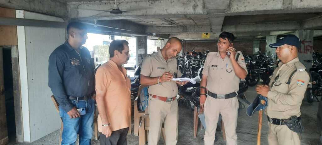 सोशल मीडिया पर वायरल एक वीडियो, जिसमें मातावाला बाग में स्थित एक शापिंग काम्प्लैक्स में एक व्यक्ति द्वारा अनाधिकृत रूप से पार्किंग स्थल के एक हिस्से में बाइक सेल/परचेज का कार्य किया जा रहा था, का संज्ञान लेते हुए एसएसपी देहरादून द्वारा सम्बन्धित व्यक्ति के विरूद्ध आवश्यक वैधानिक कार्यवाही के निर्देश दिये गये थे। जिस पर पटेलनगर पुलिस द्वारा मौके पर जाकर जानकारी की गयी तो संजय धीमान पुत्र नरेन्द्र प्रकाश निवासी 8 सहारनपुर रोड, पटेलनगर द्वारा उक्त शापिंग काम्प्लैक्स की बेसमेंट पार्किंग के एक हिस्से में वाहनों को पार्क न करवाते हुए अनाधिकृत रूप से बाइक सेल/परचेज का कार्य किया जा रहा था, जिस पर पुलिस द्वारा उक्त व्यक्ति के विरूद्ध 83 पुलिस एक्ट के तहत चालानी कार्यवाही करते हुए 10 हजार रू0 का जुर्माना किया गया तथा पार्किंग स्थल पर अनाधिकृत रूप से लगाई गई बाइकों को हटाया गया..