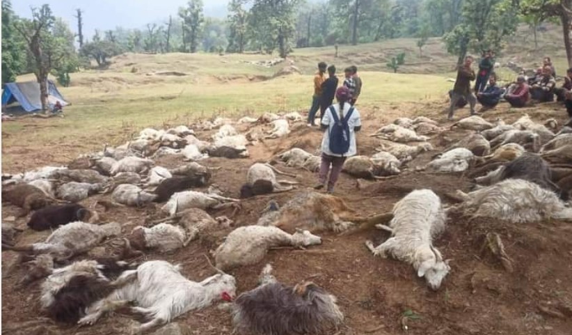 बागेश्वर कपकोट -: दानपुर क्षेत्र में आकाशीय बिजली गिरने से 121 बकरियों की मौत