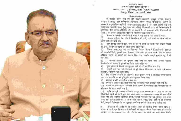 कृषि मंत्री गणेश जोशी ने सचिव कृषि विनोद कुमार सुमन को जनपद देहरादून के रायपुर के कृषि एवं भूमि संरक्षण...
