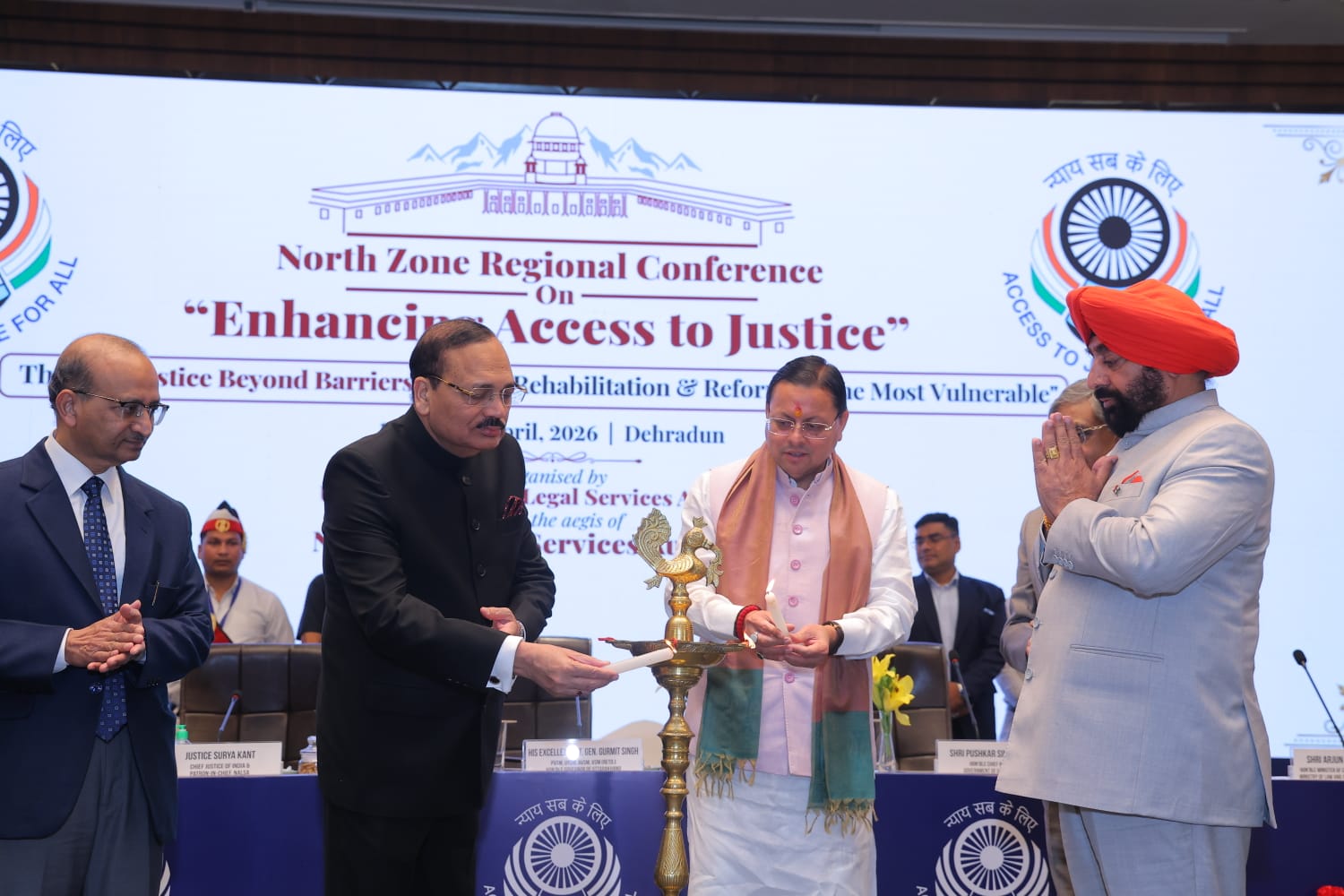 राष्ट्रीय विधिक सेवा प्राधिकरण, नई दिल्ली की पहल पर उत्तराखंड राज्य विधिक सेवा प्राधिकरण नालसा, नैनीताल द्वारा आयोजित दो दिवसीय नॉर्थ ज़ोन रीजनल कॉन्फ्रेंस का आज भव्य समापन हुआ। इस वर्ष सम्मेलन का विषय “ एनहेसिंग एक्सेस टू जस्टिस” तथा मुख्य थीम “जस्टिस बियोंड, राइट्स रिहैबिलिटेशन एंड रिफॉर्म फॉर द मोस्ट वल्नेरेबल” रही। सम्मेलन में भारत सरकार के कानून एवं न्याय राज्य मंत्री अर्जुन राम मेघवाल, उत्तराखंड के राज्यपाल लेफ्टिनेंट जनरल गुरमीत सिंह तथा मुख्यमंत्री पुष्कर सिंह धामी की गरिमामयी उपस्थिति रही।