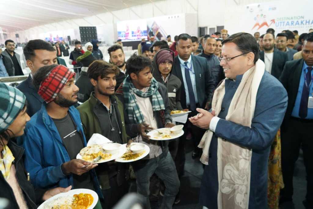 ग्लोबल इंवेस्टर्स समिट की व्यवस्थाओं से जुड़े श्रमिकों एवं पर्यावरण मित्रों के साथ सीएम धामी ने किया भोजन