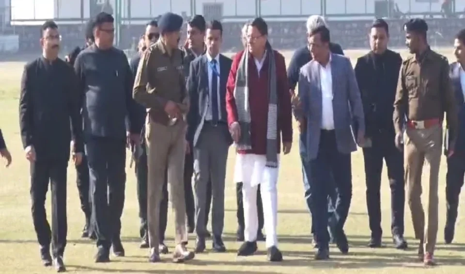 उत्तराखंड के मुख्यमंत्री पुष्कर सिंह धामी आयोजन स्थल का निरीक्षण करने पहुंचे