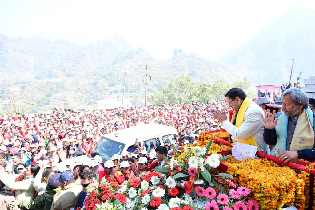 गौचर में मुख्यमंत्री पुष्कर सिंह धामी के रोड शो में उमड़ पड़ा जनसैलाब
