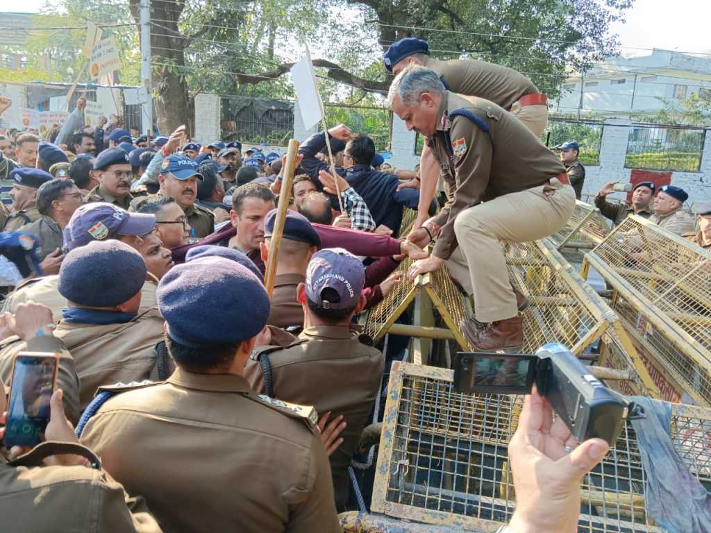 देहरादून: पुरानी पेंशन बहाली हेतु मुख्यमंत्री आवास घेराव, पुलिस के साथ नोकझोंक