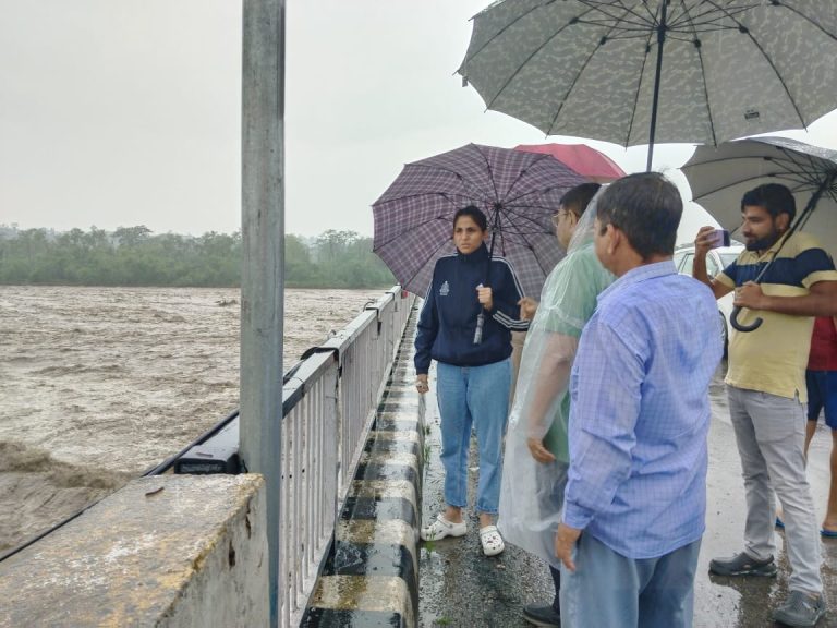 देहरादून: DM सोनिका ने किया जल भराव क्षेत्र और सॉन्ग नदी पुल का निरीक्षण