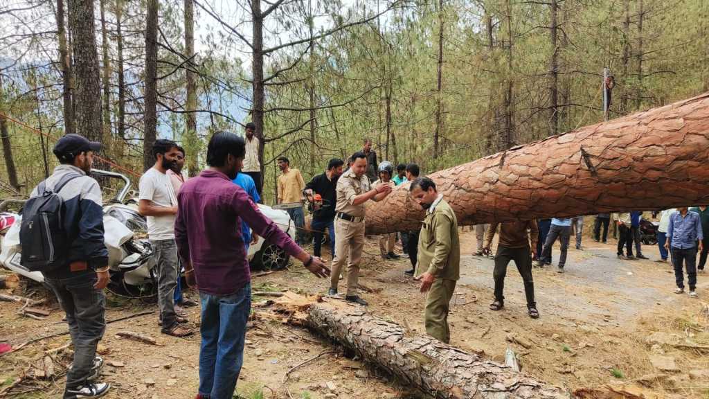 यहाँ कार के ऊपर गिर गया चीड़ का पेड, एक की मौत एक घायल