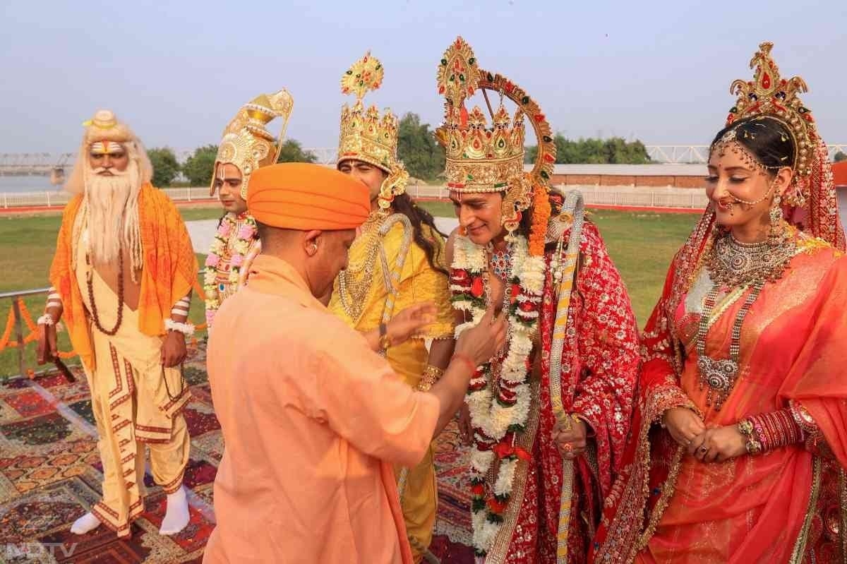 कार्यक्रम की शुरुआत में मुख्यमंत्री आदित्य नाथ योगी प्रभु श्रीराम, माता सीता और लक्ष्मण बने कलाकरों को पुष्पक विमान में लेकर पहुंचे। पुष्पक विमान से उतर कर प्रभु श्रीराम, सीता माता और लक्ष्मण रथ पर सवार हुए। मुख्यमंत्री योगी ने श्रीराम का रथ खींचा। रथ के रामकथा पार्क पहुंचने पर श्रद्धालुओं ने जयगान किया। जय श्रीराम के नारे लगते रहे।योगी ने राम-सीता और लक्ष्मण की आरती उतारी और राज तिलक किया. इसके बाद योगी आदित्यनाथ ने रामंदिर में विशेष पूजा-अर्चना भी की. फिर योगी ने कार्यक्रम को संबोधित भी किया।