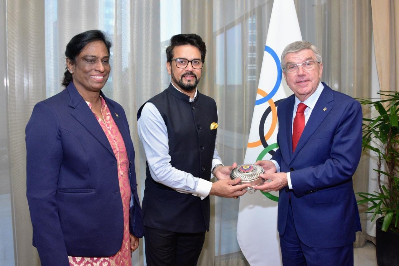 श्री ठाकुर ने शुक्रवार को मुंबई में इंटरनेशनल एसोसिएशन ऑफ एथलेटिक्स फेडरेशन के अध्यक्ष लॉर्ड सेबेस्टियन कौ और विश्व रोइंग फेडरेशन के अध्यक्ष ज्यां-क्रिस्टोफ़ रोलैंड के साथ द्विपक्षीय बैठकें कीं। केंद्रीय मंत्री ने शनिवार को आईओसी के अध्यक्ष थॉमस बाख, आईओसी के उपाध्यक्ष जुआन एंटोनियो, आईओसी कार्यकारी बोर्ड के सदस्य और यूडब्ल्यूडब्ल्यू कुश्ती के अध्यक्ष नेनाद लेलोविक, अंतर्राष्ट्रीय पैरालंपिक समिति के अध्यक्ष एंड्रयू पार्सन, एसोसिएशन ऑफ नेशनल ओलंपिक कमिटीज़ की महासचिव गुनिला लिंडबर्ग, आईओसी सदस्य और फ्यूचर गेम्स कमीशन की अध्यक्ष कोलिंडा ग्रैबर-किटारोविच, अंतर्राष्ट्रीय हॉकी महासंघ के अध्यक्ष तैय्यब इकराम, अंतर्राष्ट्रीय साइक्लिंग महासंघ के अध्यक्ष डेविड लैपर्टिएंट और विश्व डोपिंग रोधी एजेंसी के अध्यक्ष विल्टोल्ड बांका से मुलाकात की। राज्यसभा सांसद, पूर्व ओलंपियन और ट्रैक एंड फील्ड एथलीट और भारतीय ओलंपिक संघ की अध्यक्ष पी.टी. उषा भी इन द्विपक्षीय बैठकों में मौजूद रहीं।
