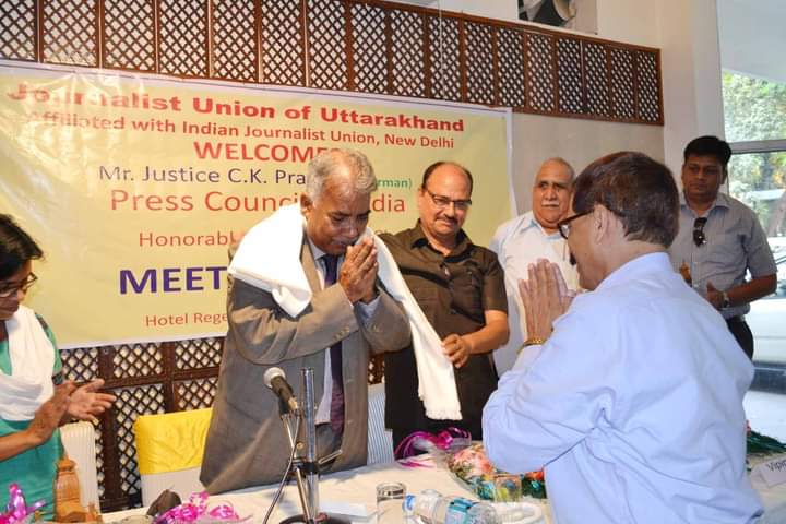 जर्नलिस्ट यूनियन ऑफ उत्तराखंड द्वारा “प्रेस से मिलिये” कार्यक्रम का आयोजन किया गया। जिसमें प्रेस काउंसिल ऑफ इंडिया के अध्यक्ष न्यायमूर्ति सी.के.प्रसाद एवं काउंसिल के सदस्य के अमरनाथ, डा. सुमन गुप्ता, विपिन मेवार, एवं अपूर्वा कुमार शर्मा और प्रेस कांउंसिल की सचिव विभा भार्गव ने भाग लिया।