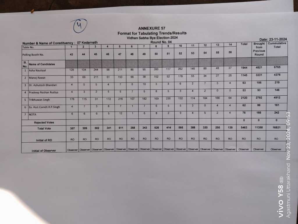 बीजेपी क़ो केदारनाथ मे चौथे राउंड मे