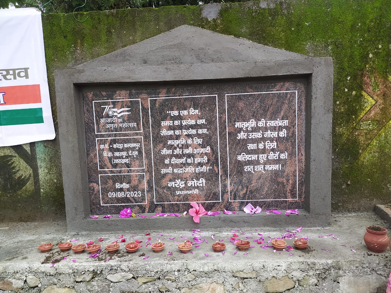 आजादी का अमृत महोत्सव कार्यक्रम के अंर्तगत ‘मेरी माटी मेरा देश‘ अभियान का आज जनपद में जिलाधिकारी सोनिका व मुख्य विकास अधिकारी झरना कमठान के नेतृत्व में समस्त 06 विकासखण्डों की 23 ग्राम पंचायतों में कार्यक्रम का विधिवत् भव्यता से शुभारम्भ किया गया। कार्यक्रम के तहत शिला-फलक की स्थापना, पंचप्रण शपथ एवं सेल्फी, वसुधा वन्दन, वीरों का वन्दन तथा झण्डारोहण किया गया एवं कार्यक्रम के अन्त में आज प्रथम दिवस का कार्यक्रम राष्ट्रगान गायन के पश्चात समापन हुआ।
