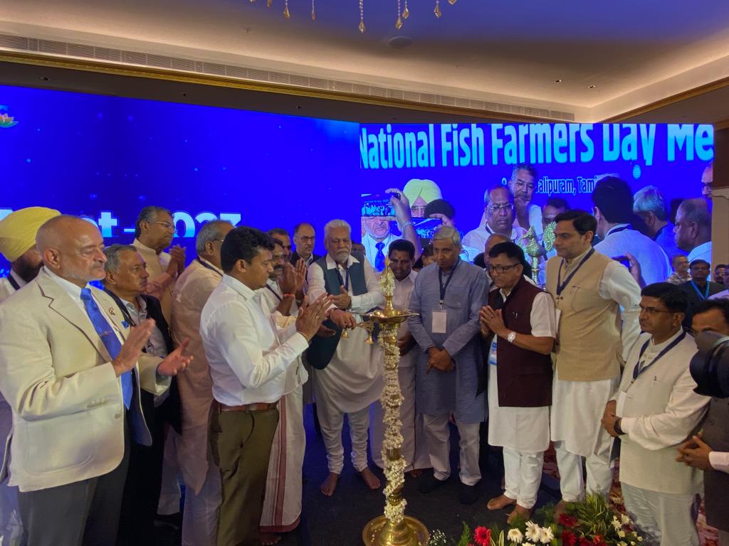 तमिलनाडु: हर साल 10 जुलाई को “राष्ट्रीय मत्स्य किसान दिवस” मनाया जाता है । इस वर्ष “राष्ट्रीय मत्स्य किसान दिवस” 10-11 जुलाई को तमिलनाडु के शहर महाबलिपुरम में ‘समर मीट 2023’ और ‘स्टार्ट-अप कॉन्क्लेव’के आयोजन के साथ मनाया जा रहा है। केंद्रीय मंत्री , मत्स्यपालन, पशुपालन और डेयरी, पुरषोत्तम रुपाला, केंद्रीय राज्य मंत्री संजीव वालियांन, राज्य एवं केंद्र शासित प्रदेशों के मत्स्य पालन मंत्रियों की उपस्थिति में दीप प्रज्वलित कर कार्यक्रम का शुभारंभ किया गया। इस अवसर पर देश भर से लगभग 10500 मत्स्य किसानों, एकूआप्रिनियोर्स, मछुआरों, पेशेवरों, अधिकारियों और वैज्ञानिकों ने भाग लिया।