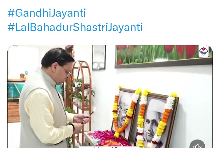 • उत्तराखंड के मुख्य सचिव आनन्द बर्द्धन ने सचिवालय में राष्ट्रपिता महात्मा गांधी और पूर्व प्रधानमंत्री स्व. लाल बहादुर शास्त्री की जयंती पर उनके चित्र पर माल्यार्पण कर उनका भावपूर्ण स्मरण किया। सचिवालय के अन्य उच्चाधिकारियों द्वारा भी महात्मा गांधी जी तथा पूर्व प्रधानमंत्री स्व. लाल बहादुर शास्त्री के चित्रों पर माल्यार्पण कर श्रद्धांजलि दी गई। मुख्य सचिव ने सचिवालय में परिसर में उपस्थित सभी अधिकारियों कर्मचारियों को ‘स्वच्छता ही सेवा‘ शपथ भी दिलाई। इस अवसर पर भारतखंडे संगीत महाविद्यालय द्वारा गांधी जी के प्रिय भजन वैष्णव जन का समवेत गायन किया गया।