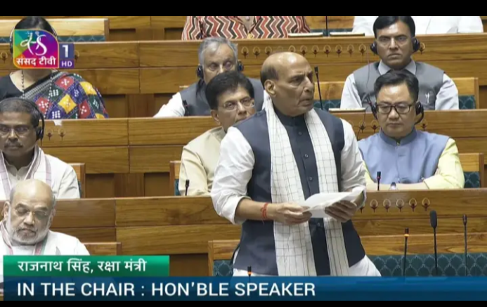 सदन कार्यवाही दुबारा 2 बजे शुरू होने के बाद रक्षा मंत्री राजनाथ सिंह ने ‘ऑपरेशन सिंदूर’ के बारे में लोकसभा में विस्तृत जानकारी दी। उन्होंने कहा, पूरा ऑपरेशन महज 22 मिनट में समाप्त हो गया। हमने आतंकवादियों को उनके घर में घुसकर मारा। ऑपरेशन सिंदूर के दौरान सैन्य कार्रवाई में 100 से अधिक आतंकवादी मारे गए। सेना ने हमारी माताओं और सिंदूर का बदला लिया।