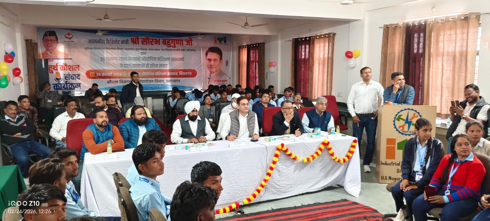 प्रदेश के कौशल विकास एवं सेवायोजन, पशुपालन, गन्ना विकास एवं चीनी उद्योग, दुग्ध विकास, मत्स्य पालन एवं प्रोटोकॉल मंत्री सौरभ बहुगुणा ने आज मंगलवार को राजकीय औद्योगिक प्रशिक्षण संस्थान सितारगंज ऊधमसिंह नगर में आयोजित कार्यक्रम में प्रशिक्षणार्थियों के साथ सीधा संवाद किया। इसके साथ ही उन्होंने वीडियो कॉन्फ्रेंसिंग के माध्यम से प्रदेश के समस्त राजकीय औद्योगिक प्रशिक्षण संस्थान के प्रशिक्षणार्थियों के साथ चतुर्थ कौशल संवाद किया।