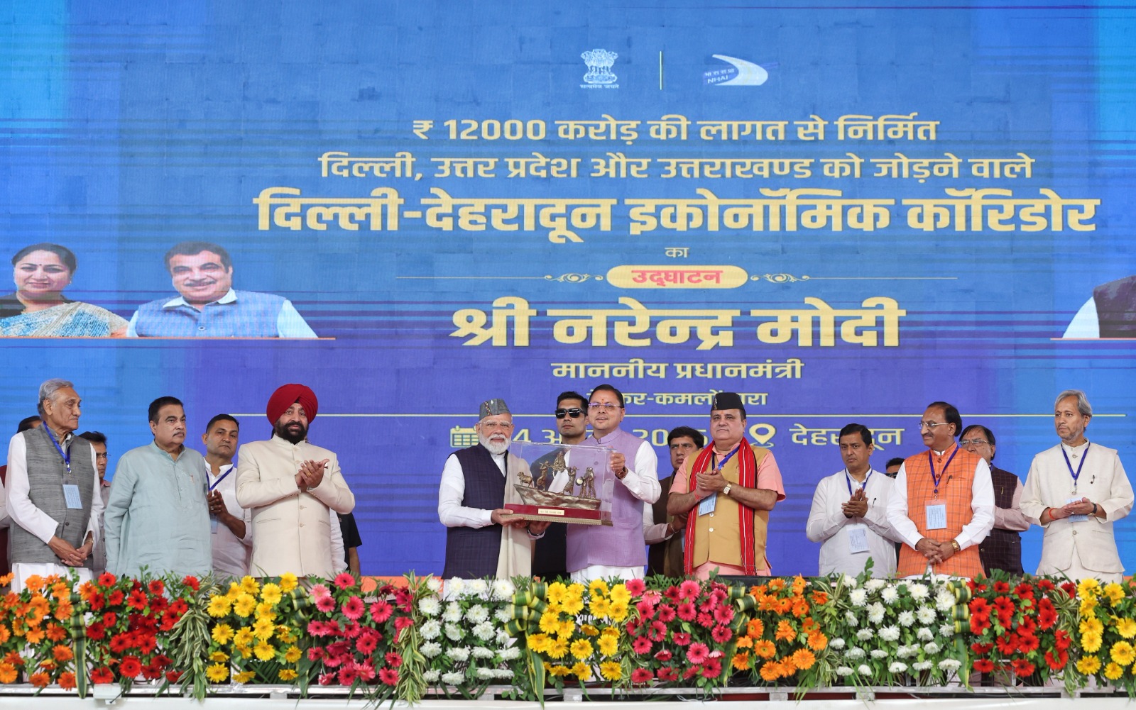प्रधानमंत्री नरेंद्र मोदी ने मंगलवार को जसवंत सिंह ग्राउंड, गढ़ी कैंट देहरादून में आयोजित समारोह में 210 किमी लंबे दिल्ली-देहरादून इकोनॉमिक कॉरिडोर का रिमोट बटन दबाकर लोकार्पण किया। इससे पहले प्रधानमंत्री ने करीब-करीब 12 किलोमीटर का रोड शो, काली मंदिर से लेकर समारोह स्थल तक किया। 12 किलोमीटर के मार्ग पर जन सैलाब ने मानव श्रृंखला बनाकर उनका हर्षोल्लास के साथ स्वागत किया।