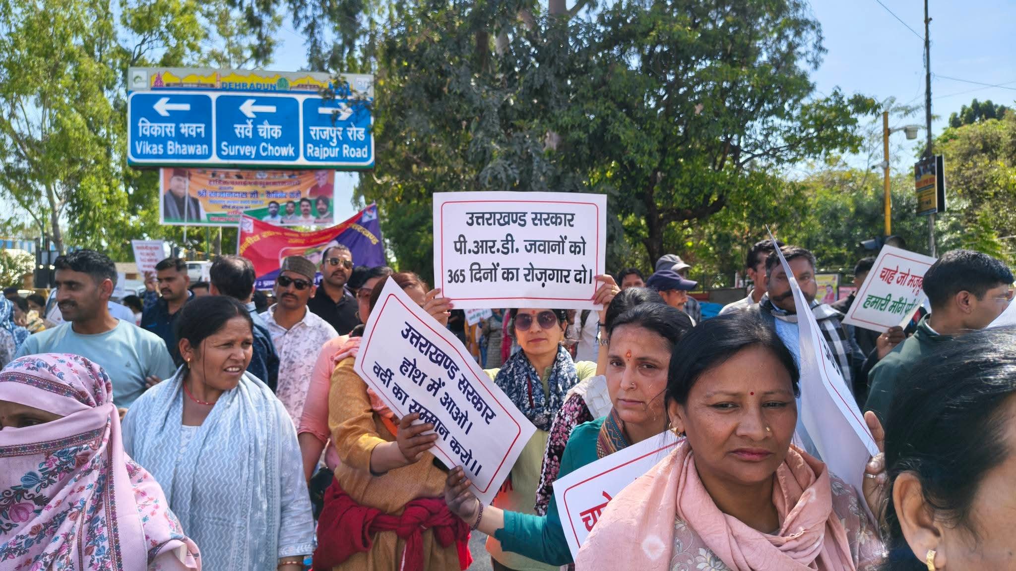 PRD जवानों का देहरादून स्थित सचिवालय परिसर में जोरदार प्रदर्शन