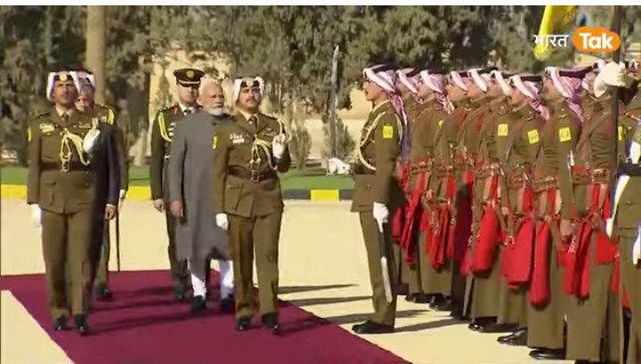 प्रधानमंत्री नरेन्‍द्र मोदी जॉर्डन , इथियोपिया और ओमान की तीन देशों की विदेश यात्रा पर हैं। आज प्रधानमंत्री मोदी जॉर्डन केअम्मान पहुंच गए हैं। दोनों देशों के बीच घनिष्ठ संबंधों के प्रतीक के रूप में एक विशेष भाव के तहत, अम्मान हवाई अड्डे पर पहुंचने पर प्रधानमंत्री का जॉर्डन के प्रधानमंत्री डॉ. जाफर हसन ने गर्मजोशी से स्वागत किया और समारोहपूर्वक उनका अभिवादन किया। जॉर्डन उनकी तीन देशों की यात्रा का पहला पड़ाव है। जॉर्डन की यह पूर्ण द्विपक्षीय यात्रा 37 साल के अंतराल के बाद हो रही है। प्रधानमंत्री की यह यात्रा दोनों देशों के बीच राजनयिक संबंधों की स्थापना की 75वीं वर्षगांठ के साथ-साथ हो रही है। यहां प्रधानमंत्री का  भारतीय समुदाय ने  जोरदार स्वागत किया।