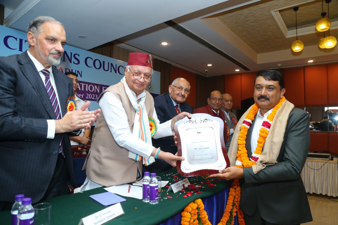 देहरादून राज्य समाचार एसएसपी अजय सिंह को प्राइड ऑफ़ दून अवार्ड से नवाजा November 2, 2023 Dharmpal Singh Rawat DOON CITIZENS COUNCIL द्वारा होटल मधुबन राजपुर रोड में सम्मान समारोह का आयोजन किया गया जिसमें मुख्य अतिथि महामहिम राज्यपाल केरल आरिफ मोहम्मद खान द्वारा वरिष्ठ पुलिस अधीक्षक देहरादून अजय सिंह को “PRIDE OF DOON AWARD” से नवाजा गया Share Post navigation Previous करवा चौथ:चंद्रमा को अर्घ्य देकर महिलाओं ने खोला निर्जला व्रतNext उत्तराखंड: सीधी भर्ती से भरे जायेंगे प्रधानाचार्यों के 692 पद