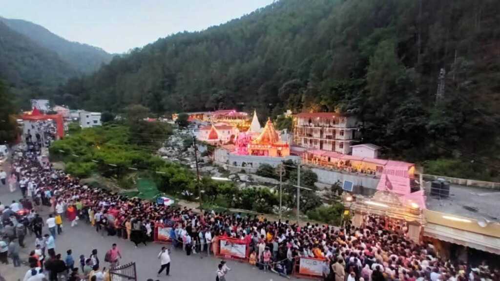 उत्तराखण्ड के विश्व प्रसिद्ध कैंचीधाम मंदिर में आज आरती और प्रसाद वितरण के साथ ही स्थापना दिवस शुरू हो गया है। पुलिस की कड़ी व्यवस्था के बीच बाबा के भक्तों में जोश दिखाई दिया। शनिवार शाम से ही कैचीधाम में बाबा के दर्शन के लिए श्रद्धालुओं की भीड़ लगी हुई है। लंबी-लंबी कतरो मैं भक्तजन अपनी बारी का इंतजार करते हुए बाबा के जयकारे लगाते दिखे। मंदिर प्रबंधन ने ब्रह्म मूर्त में बाबा को भोग अर्पित कर दर्शनों के लिए खोल दिया।