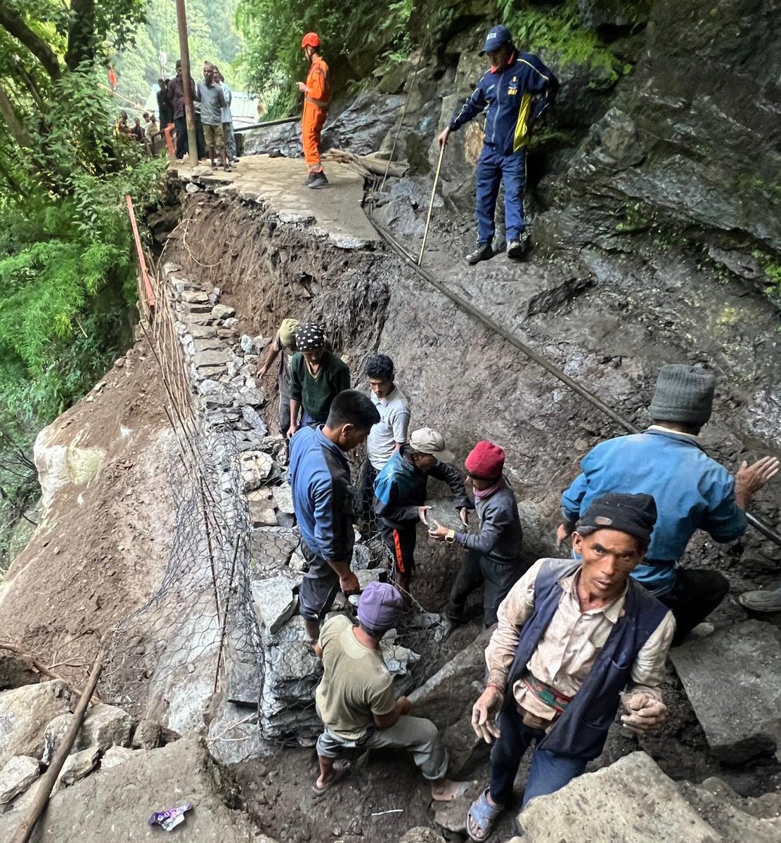 रुद्रप्रयाग, आज रविवार की सुबह, केदारनाथ से लौटने वाले और श्री केदारनाथ धाम की यात्रा पर जाने वाले यात्रियों को गौरीकुण्ड और सोनप्रयाग से सुरक्षित मार्ग से आगे भेजा गया है। बता दें, 20 सितम्बर की रात गौरीकुण्ड से श्री केदारनाथ धाम तक जाने वाले पैदल मार्ग में जंगल चट्टी के पास भू-धंसाव के चलते करीब 10 से 15 मीटर की दूरी पर मार्ग पूरी तरह से क्षतिग्रस्त हो गया था। बचाव टीमों ने तेजी से काम करते हुए वैकल्पिक मार्ग तैयार किया है । इसी मार्ग देर शाम यात्रियों को सुरक्षित गौरीकुण्ड और सोनप्रयाग की ओर रवाना किया जा सका। इस दौरान मुख्य मार्ग को भी आंशिक रूप से बहाल कर दिया गया है।