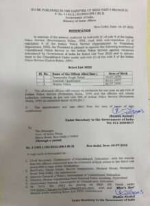 उत्तराखंड में 3 आईपीएस अफसर आईपीएस अधिकारी बन गए हैं केंद्र से अधिसूचना के साथ ही आदेश जारी हो गए हैं।